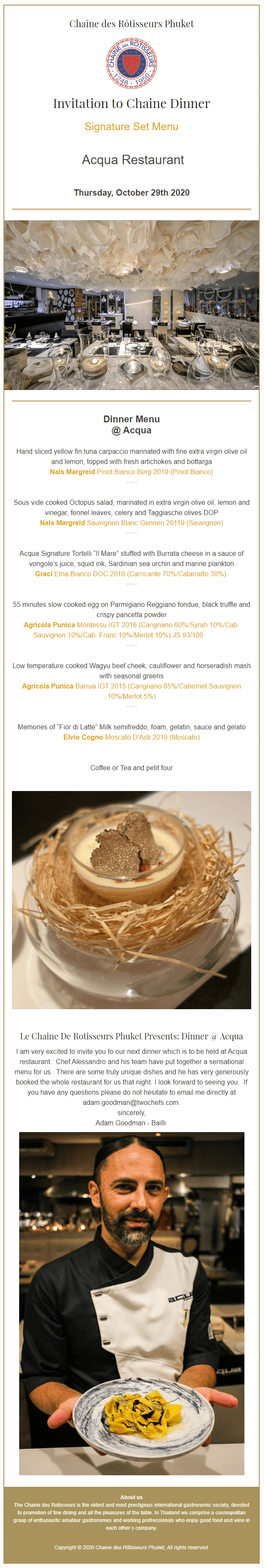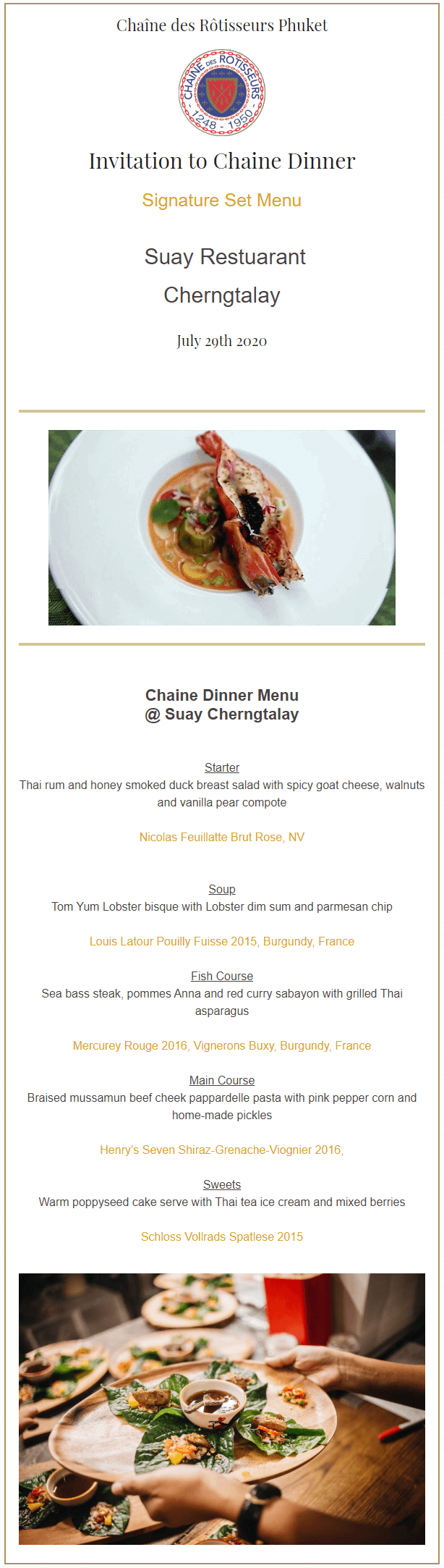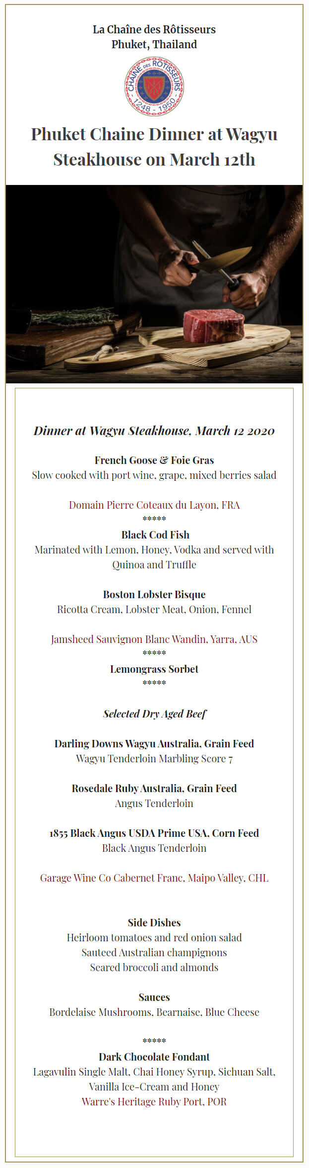 Chaîne des Rôtisseurs - Bailliage Régional de Phuket en Thailande
